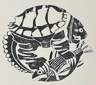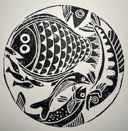 I have also created Block Prints from his acrylic paintings, woodcuts and other media. Here are a few that I have carved.