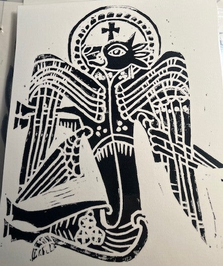 These Linoleum Block Prints I create for framing and T-Shirts. I have also created Calendars several years.